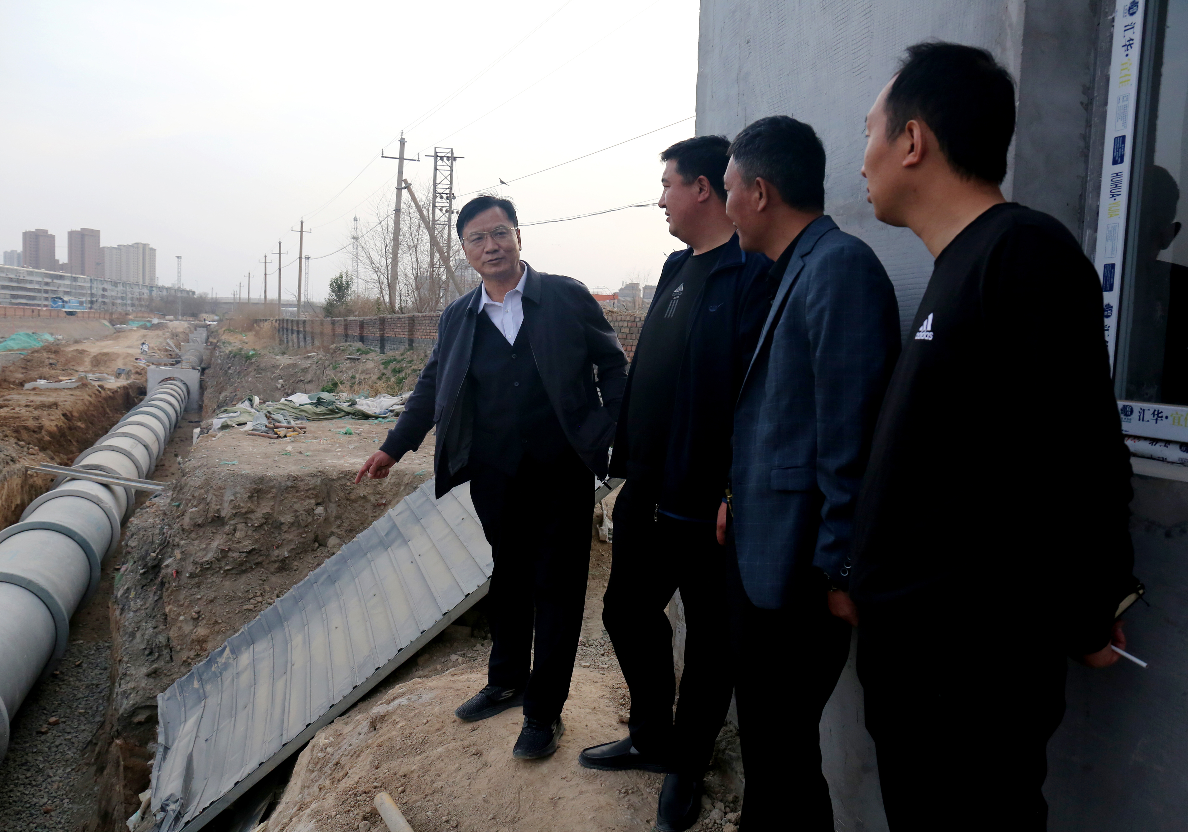 3月9日下午,公司董事長崔作銘赴干河綜合治理項目工地一線督察施工進度,確保工程項目如期完工。