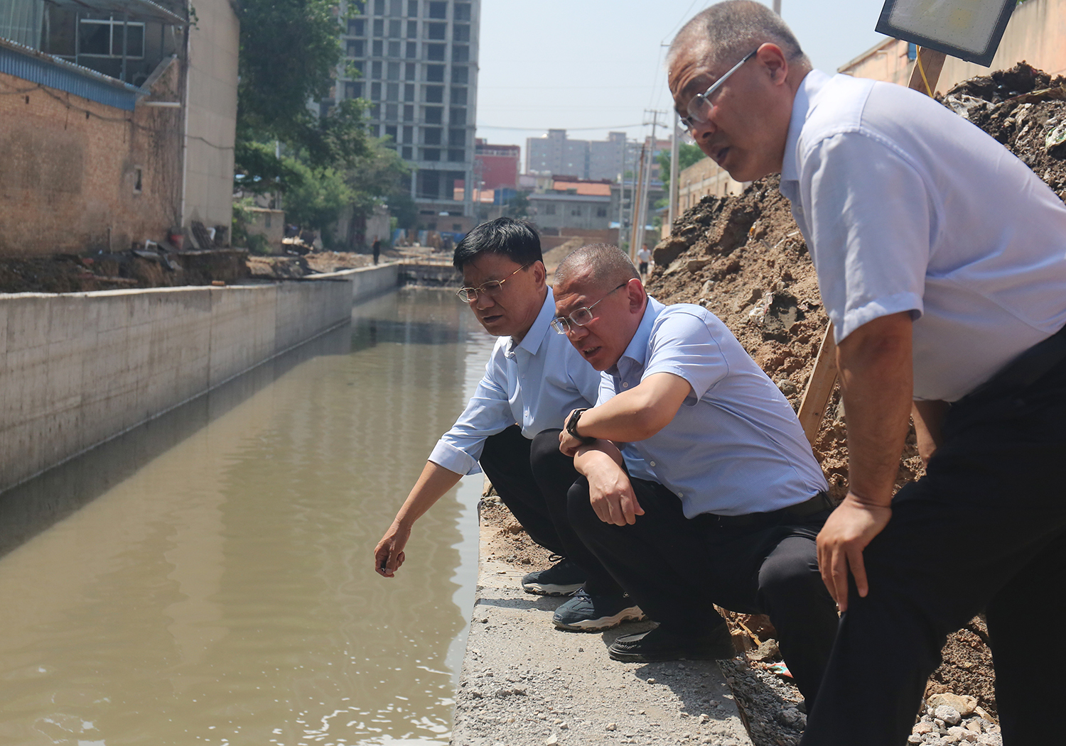 二是強(qiáng)化排查,消除隱患。下雨當(dāng)晚,公司黨委書記、董事長兼總經(jīng)理崔作銘帶領(lǐng)相關(guān)負(fù)責(zé)人冒雨赴姚暹渠禹都段、干河綜合治理項(xiàng)目工地對(duì)重點(diǎn)排水環(huán)節(jié)進(jìn)行巡查排查,每到一處標(biāo)段,詳細(xì)詢問項(xiàng)目負(fù)責(zé)人實(shí)際情況,針對(duì)現(xiàn)狀,要求做到基坑及時(shí)回填,河道及時(shí)清理疏通,確保排洪渠道安全通暢,消除防汛隱患。
