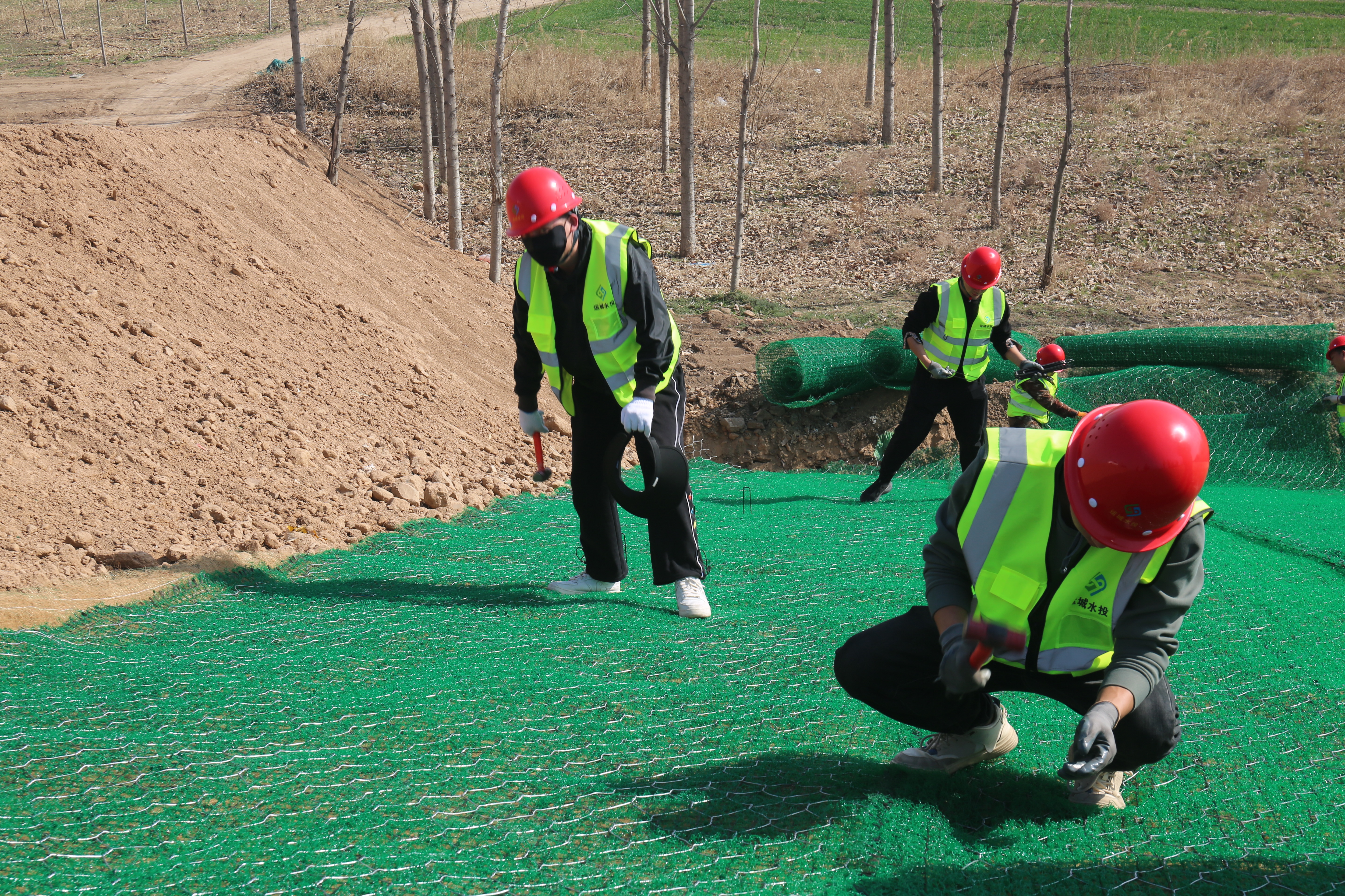 為全面落實重點工作目標,確保工程按期完成,市水投公司水工局有限公司的60余名在職員工駐扎一線,立足崗位,設(shè)定目標,成立專班,分組實施。他們相互協(xié)作,用雙腳丈量著責任和擔當,用雙手鋪設(shè)著生態(tài)護坡的“自然之美”。