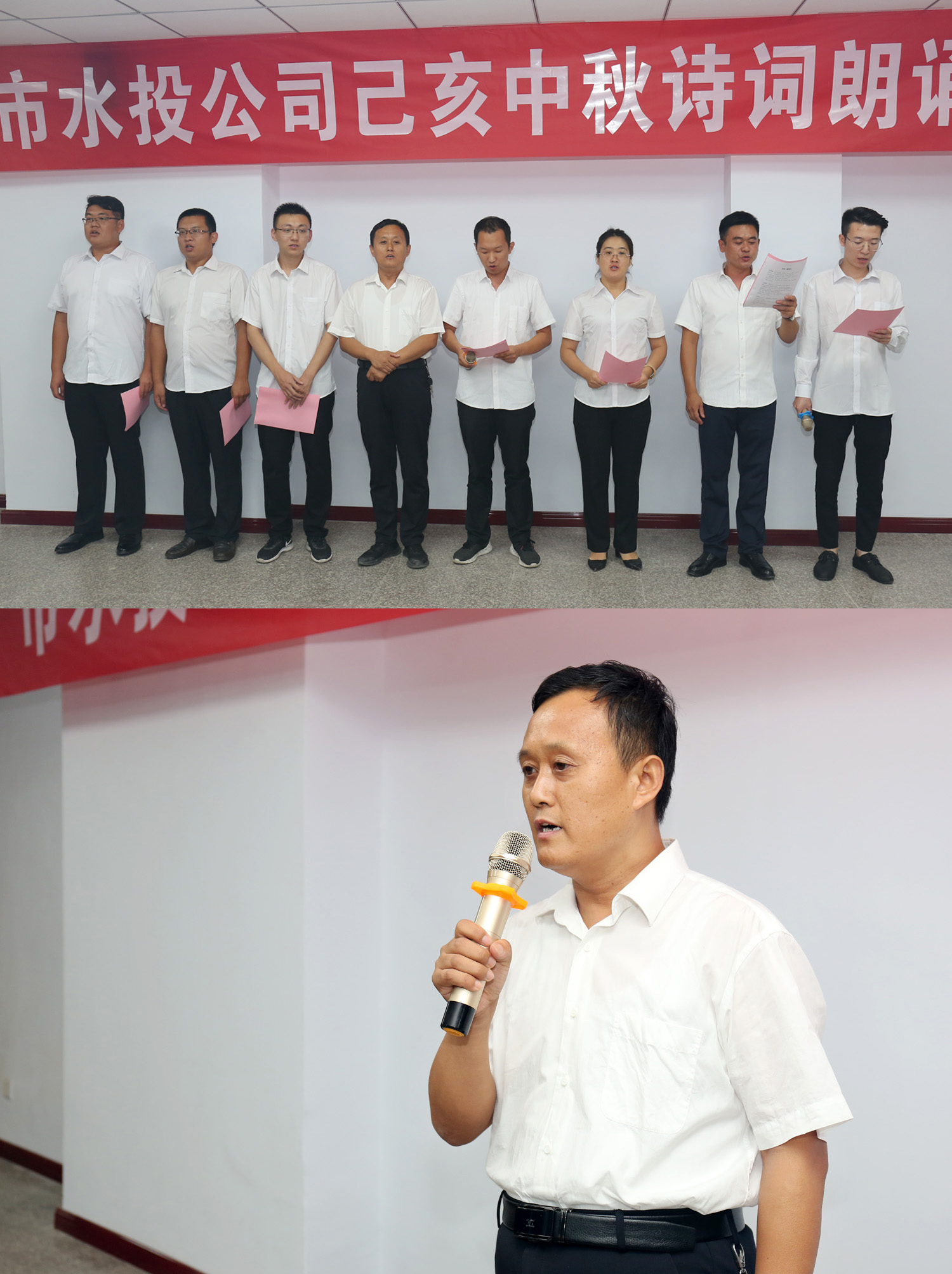 朗誦會(huì)開始前,公司黨委書記、董事長兼總經(jīng)理崔作銘致辭,向水投建設(shè)發(fā)展辛勤耕耘默默奉獻(xiàn)的全體員工致以誠摯的問候和衷心的感謝,同時(shí)預(yù)祝各位員工中秋佳節(jié)快樂家庭幸福、身體健康。他希望全體員工“守初心、擔(dān)使命,找差距、抓落實(shí)”,以“長風(fēng)破浪會(huì)有時(shí),直掛云帆濟(jì)滄海”的豪情,以“千淘萬漉雖辛苦,吹盡狂沙始到金”的毅力,以抓鐵留痕,踏石留印的執(zhí)行精神,再寫傳奇,再譜新篇!