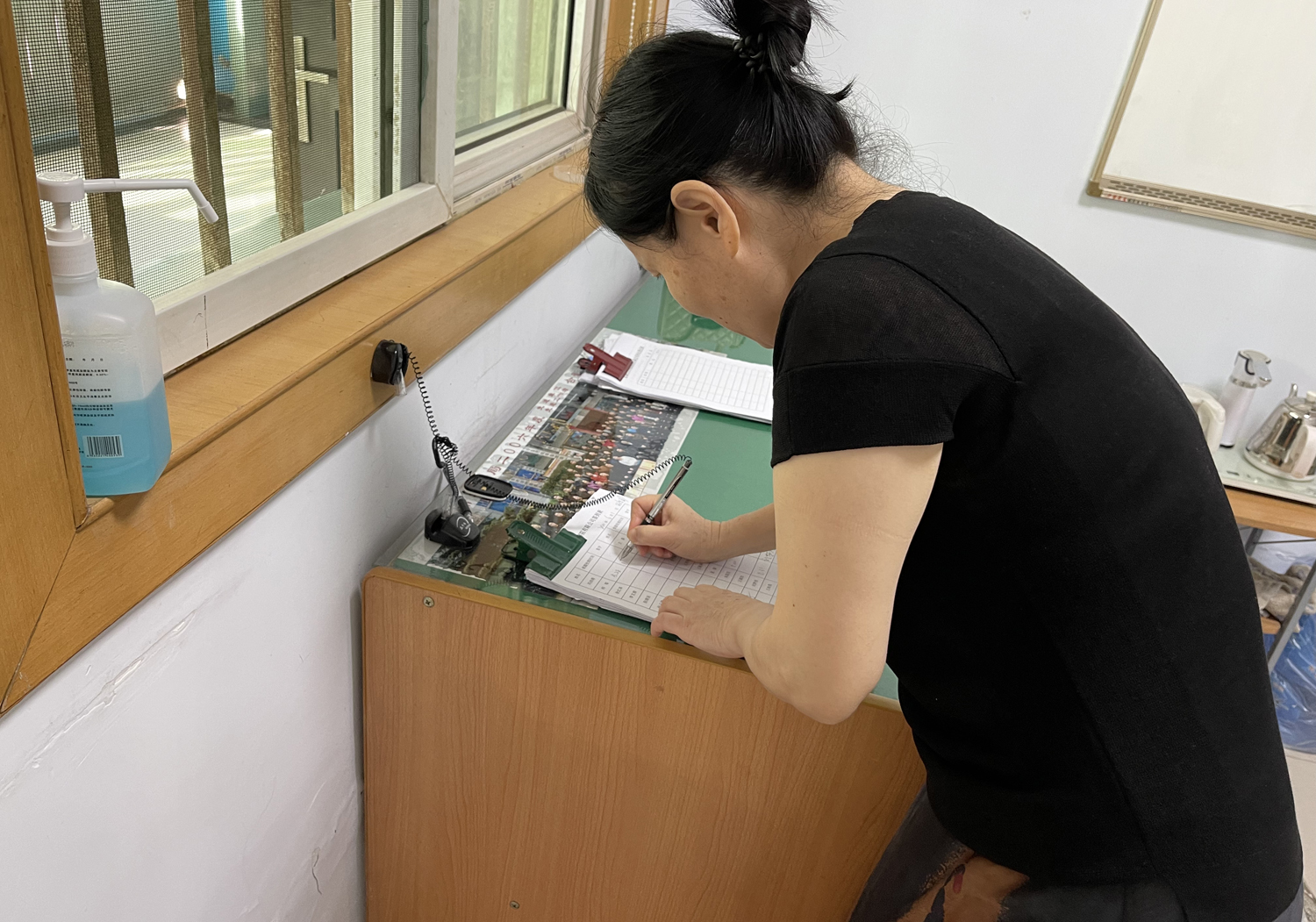 大家每日簽到時(shí),會在表格上記錄自己做過核酸的日期,五天一做,一目了然,快到期的員工看到之后就會自覺遵守。